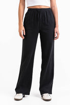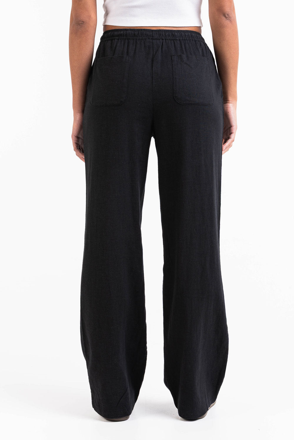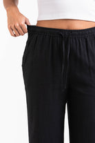 Disse linbuksene med høy midje har en pustende rett passform med sidelommer for funksjonalitet. Den elastiske midjen, snøringen og foldbare designet gjør dem til et enkelt valg for uformelle og komfortable antrekk.