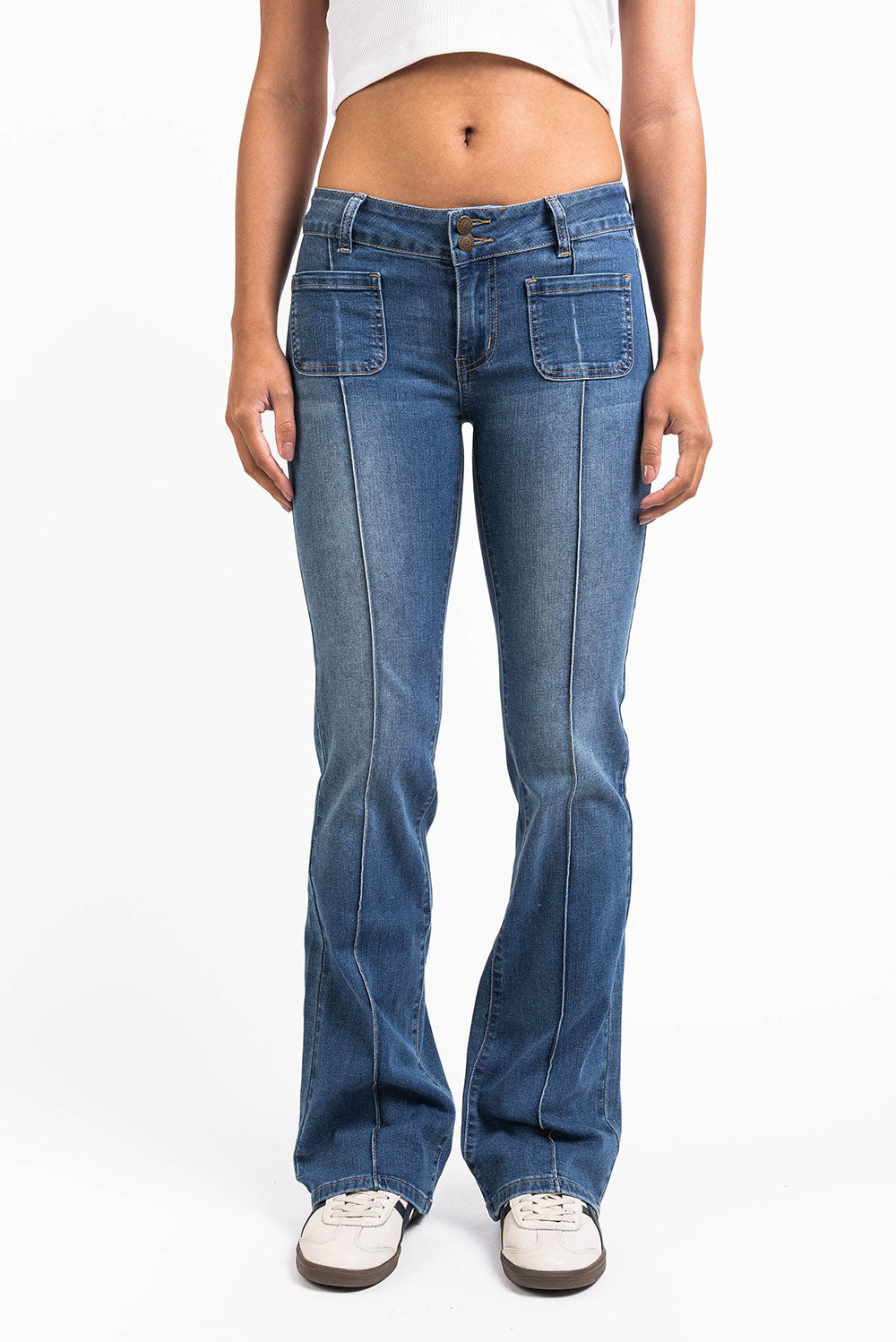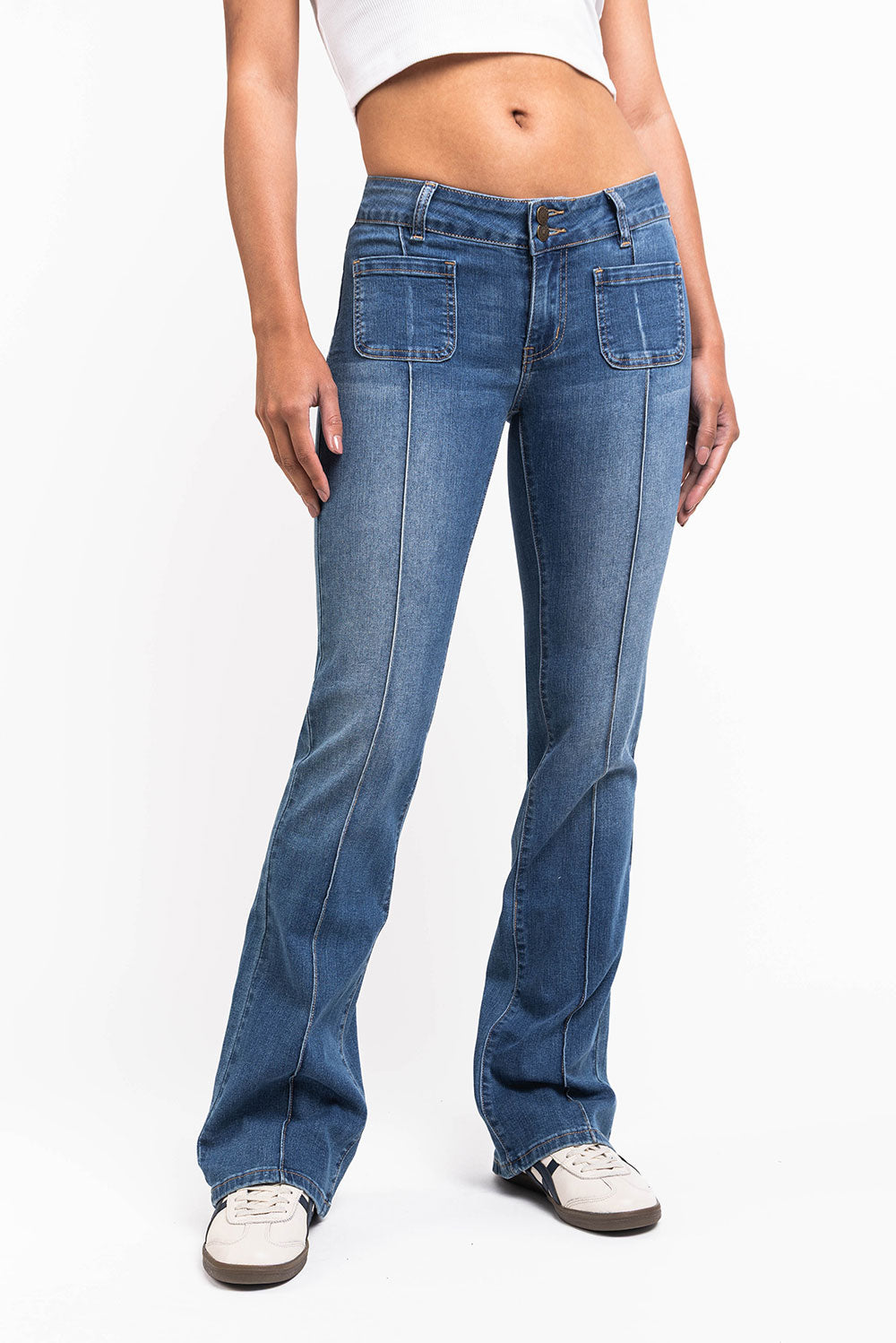 Disse jeansene med lav midje har en tidløs bootcut-passform med funksjonelle bak- og frontlommer. Detaljer som pressfolder, beltehemper og glidelåsgylf gir struktur, noe som gjør disse jeansene til et praktisk valg for hverdagsbruk.