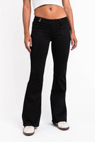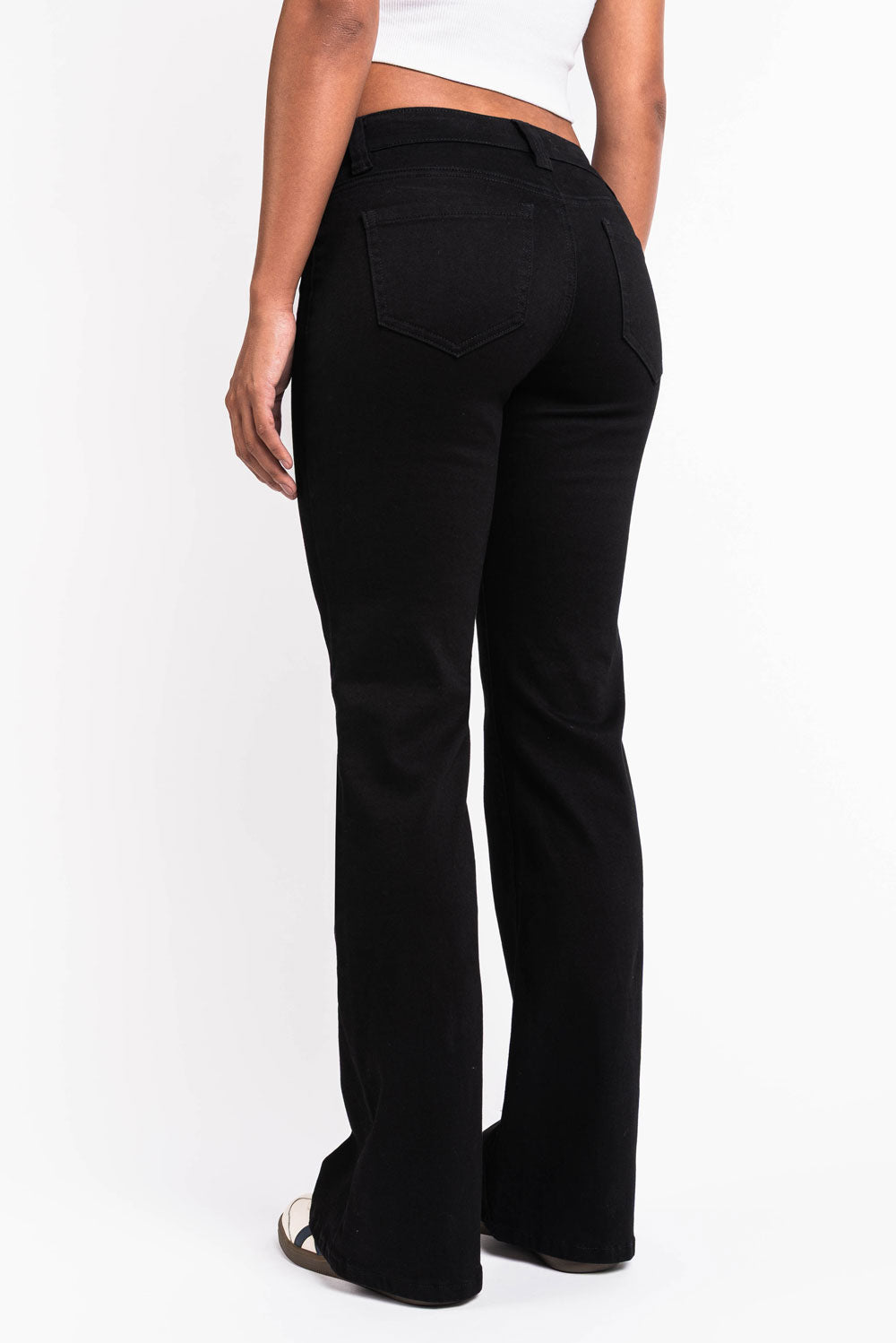 Disse jeansene med ultralav midje har en bootcut-passform med bak- og frontlommer for praktisk bruk i hverdagen. Romslige beltehemper som passer både smale og brede belter. Buksene lukkes med glidelås og dekorativt forskjøvede knapper for en stilig detalj.