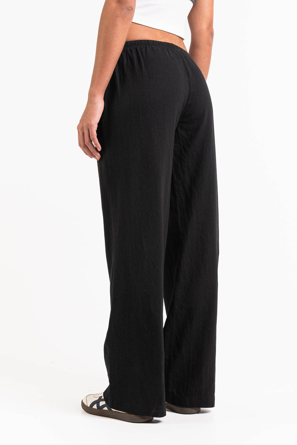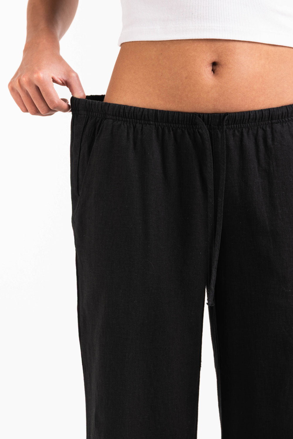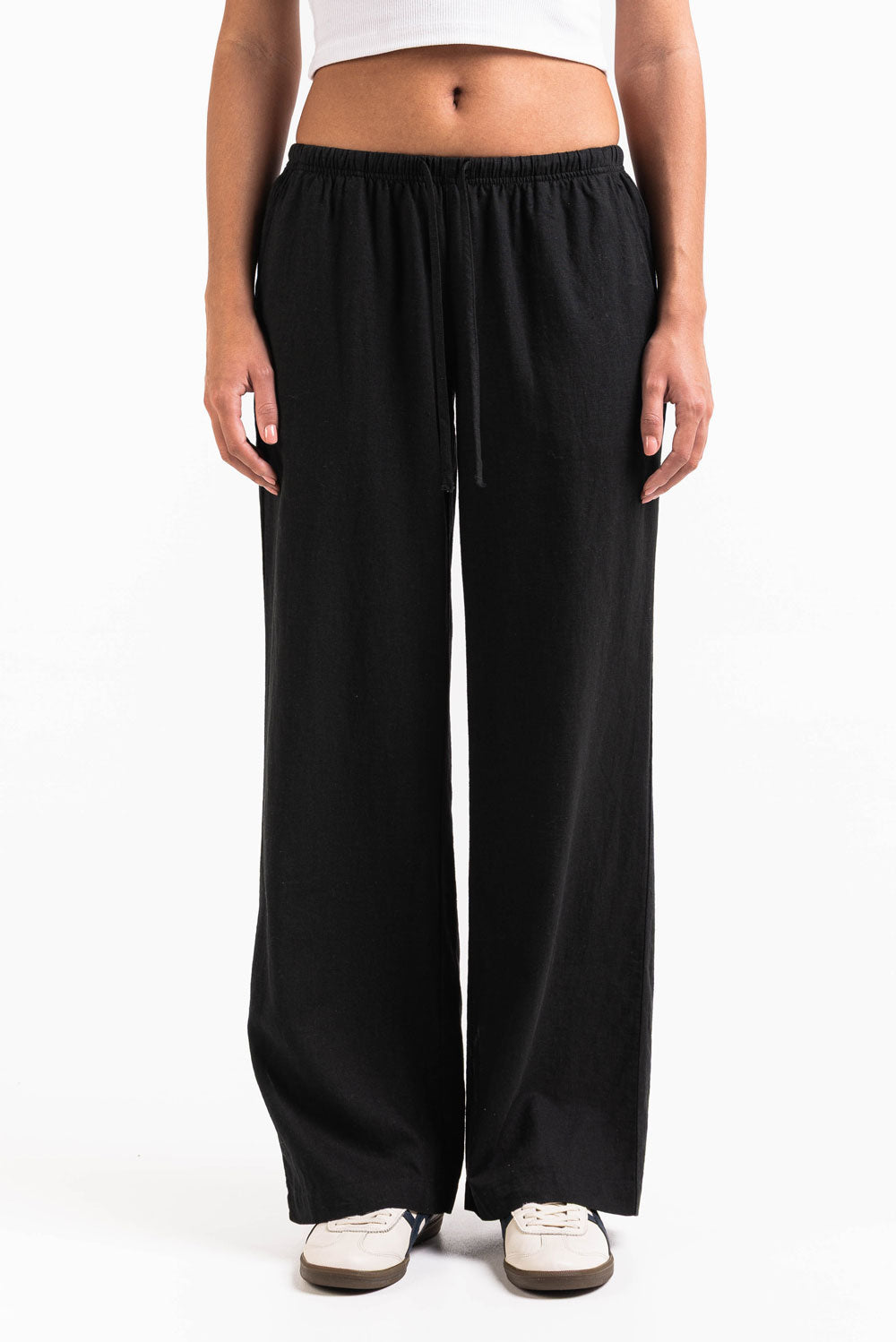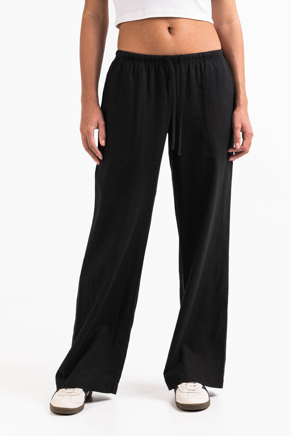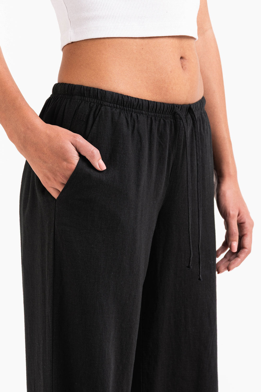 Disse linbuksene med lav midje har en avslappet rett passform med sidelommer for praktisk bruk. Designet med elastisk midje og snøring, gir de lettvektig komfort for uformelle antrekk.