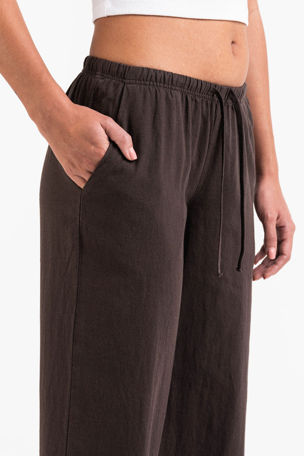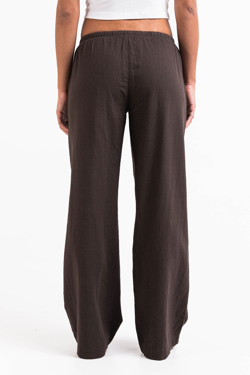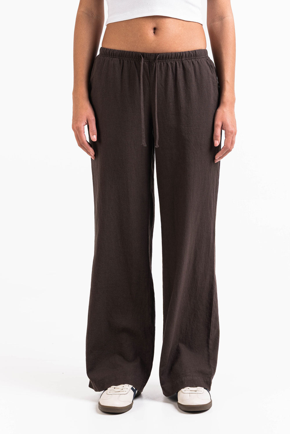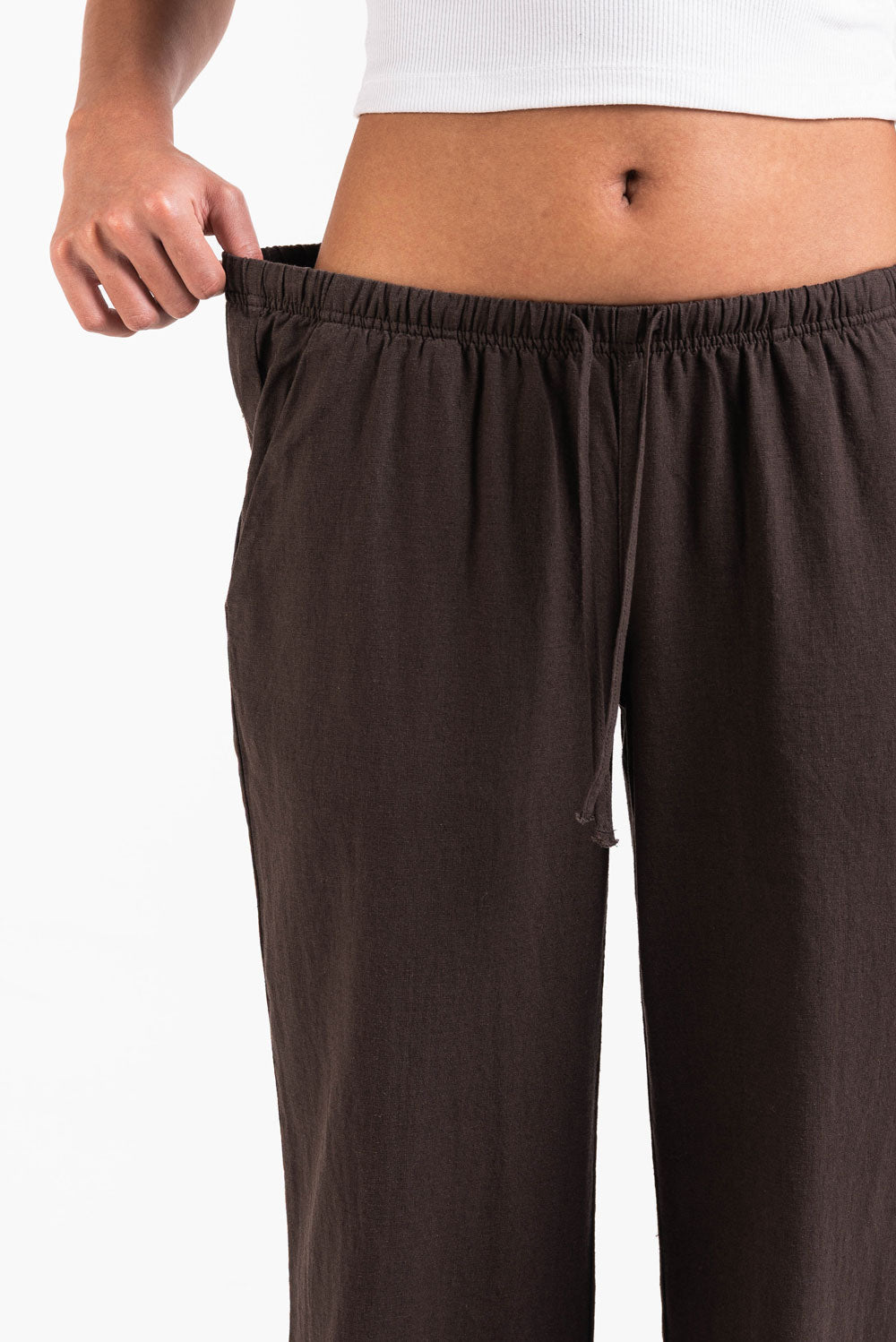 Disse linbuksene med lav midje har en avslappet rett passform med sidelommer for praktisk bruk. Designet med elastisk midje og snøring, gir de lettvektig komfort for uformelle antrekk.