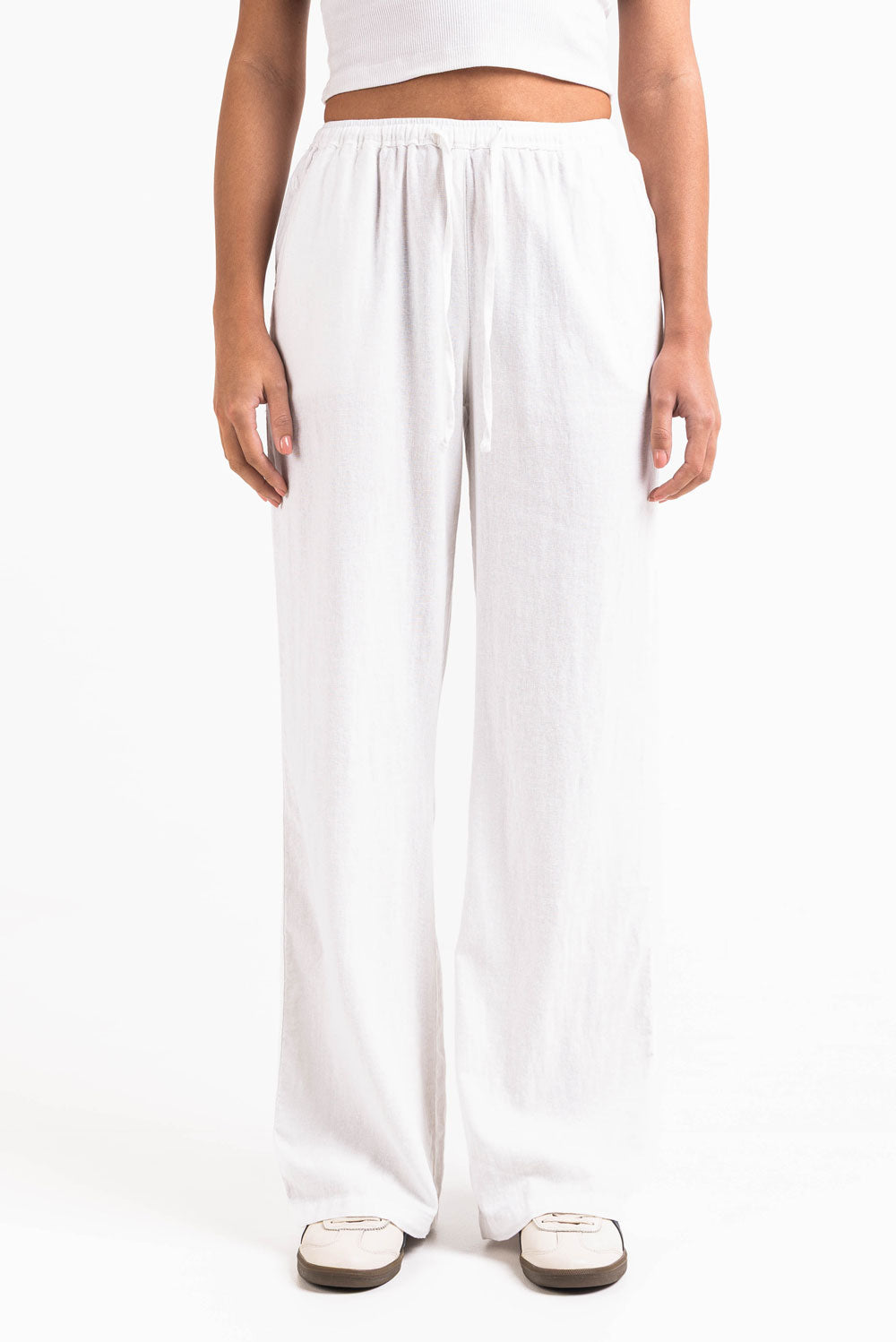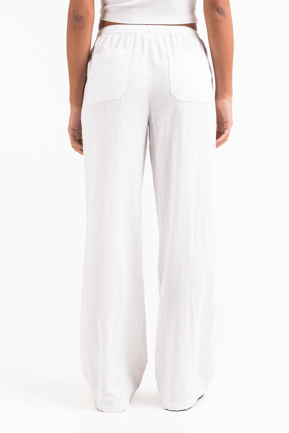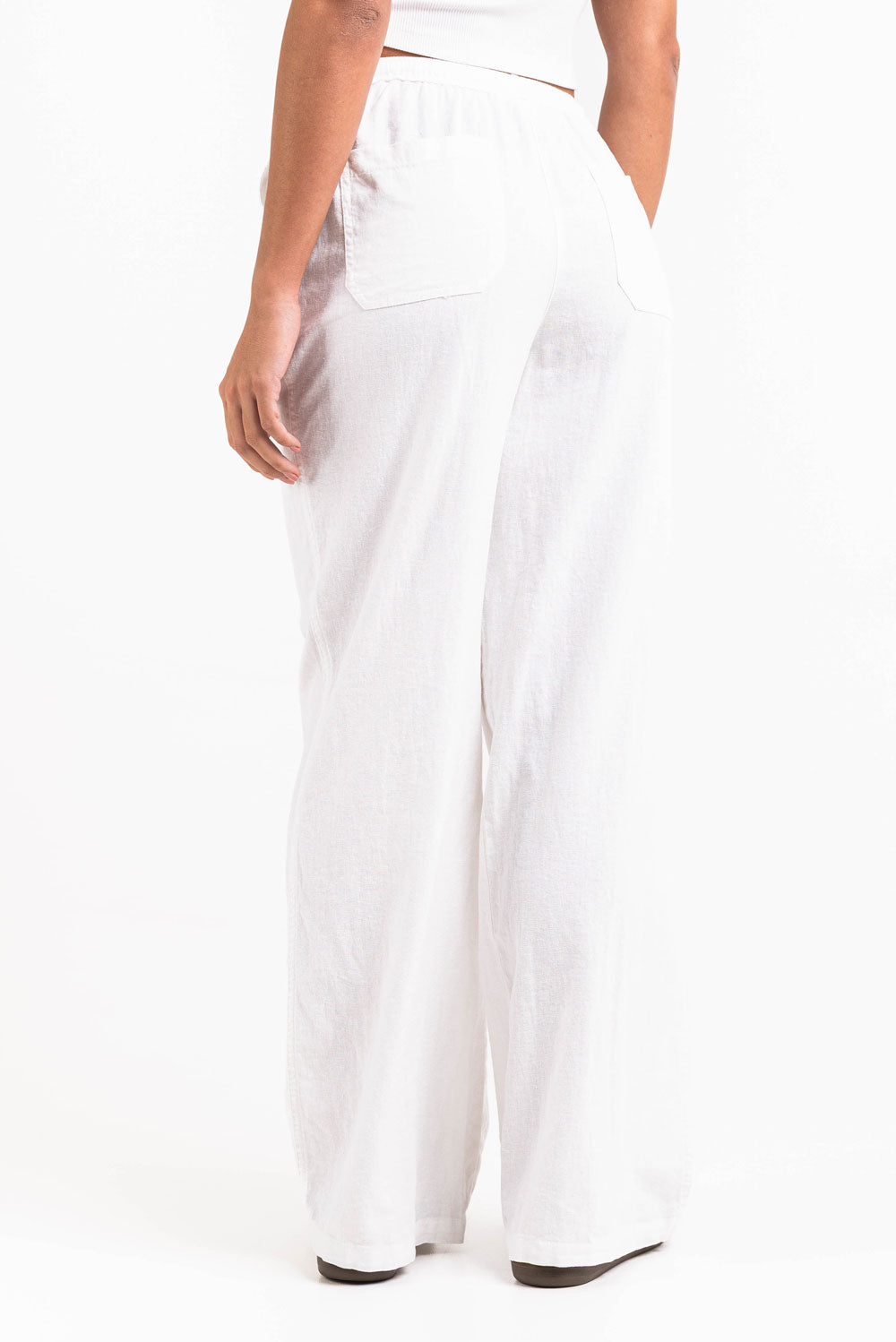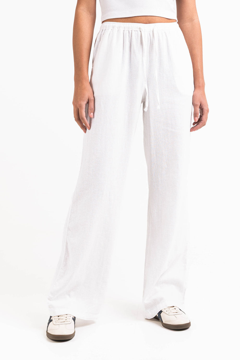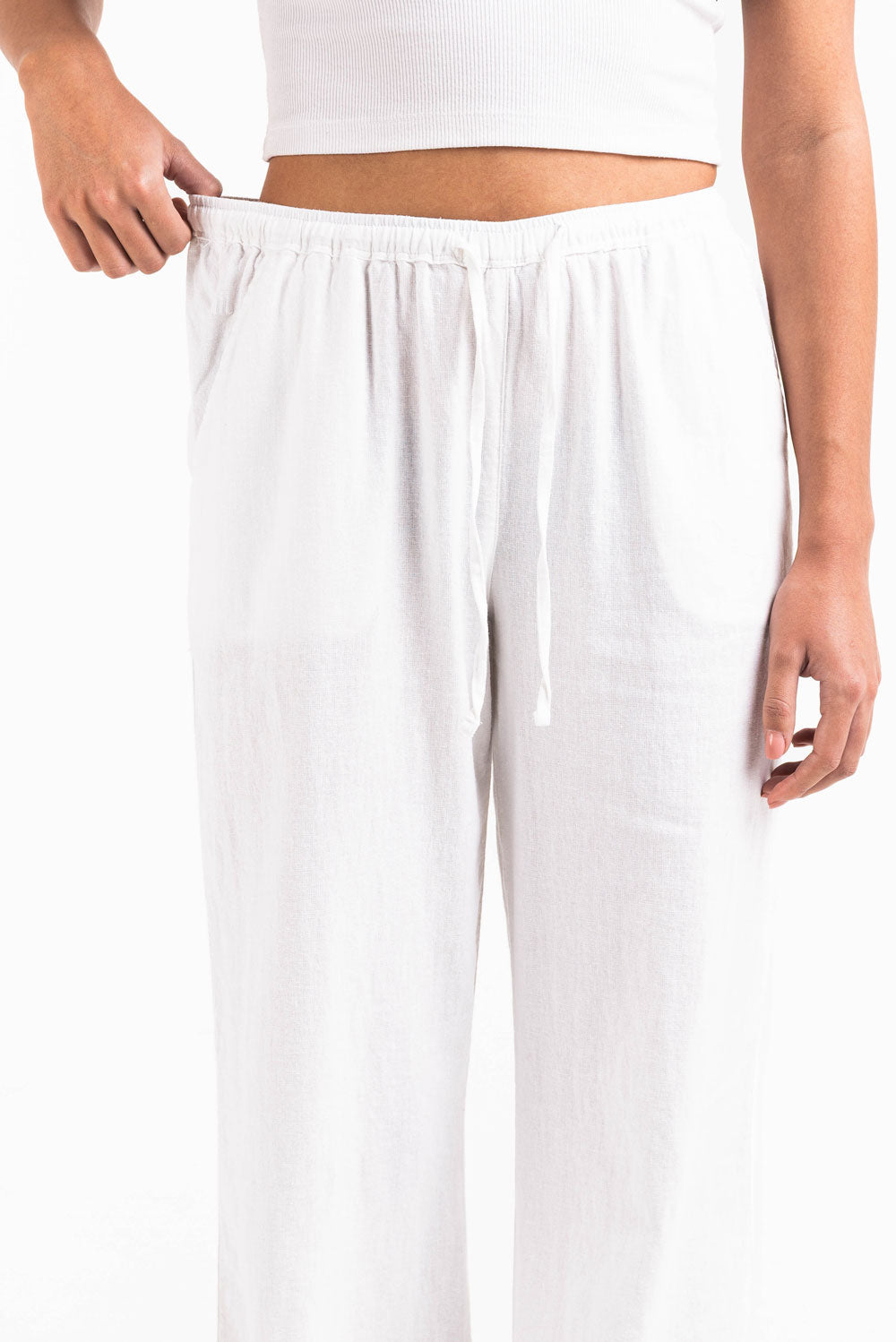 Disse linbuksene med høy midje har en pustende rett passform med sidelommer for funksjonalitet. Den elastiske midjen, snøringen og foldbare designet gjør dem til et enkelt valg for uformelle og komfortable antrekk.