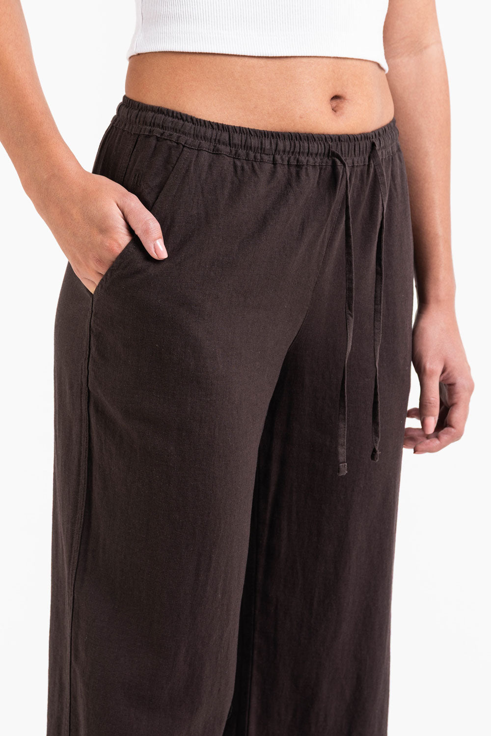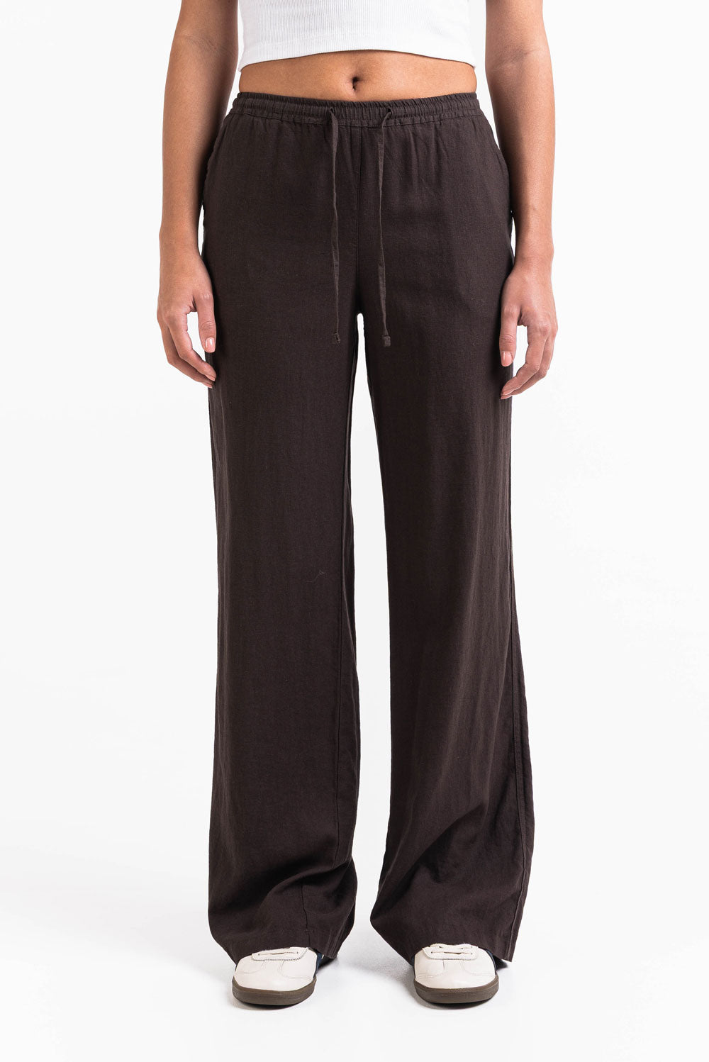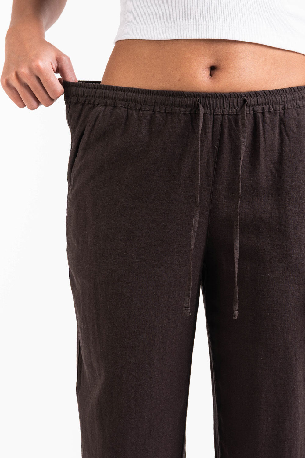 Disse linbuksene med middels midje har en avslappet rett passform med sidelommer for praktisk bruk. Elastisk midje, snøring og foldbar design sikrer en trygg passform samtidig som de holder seg lette og pustende.
