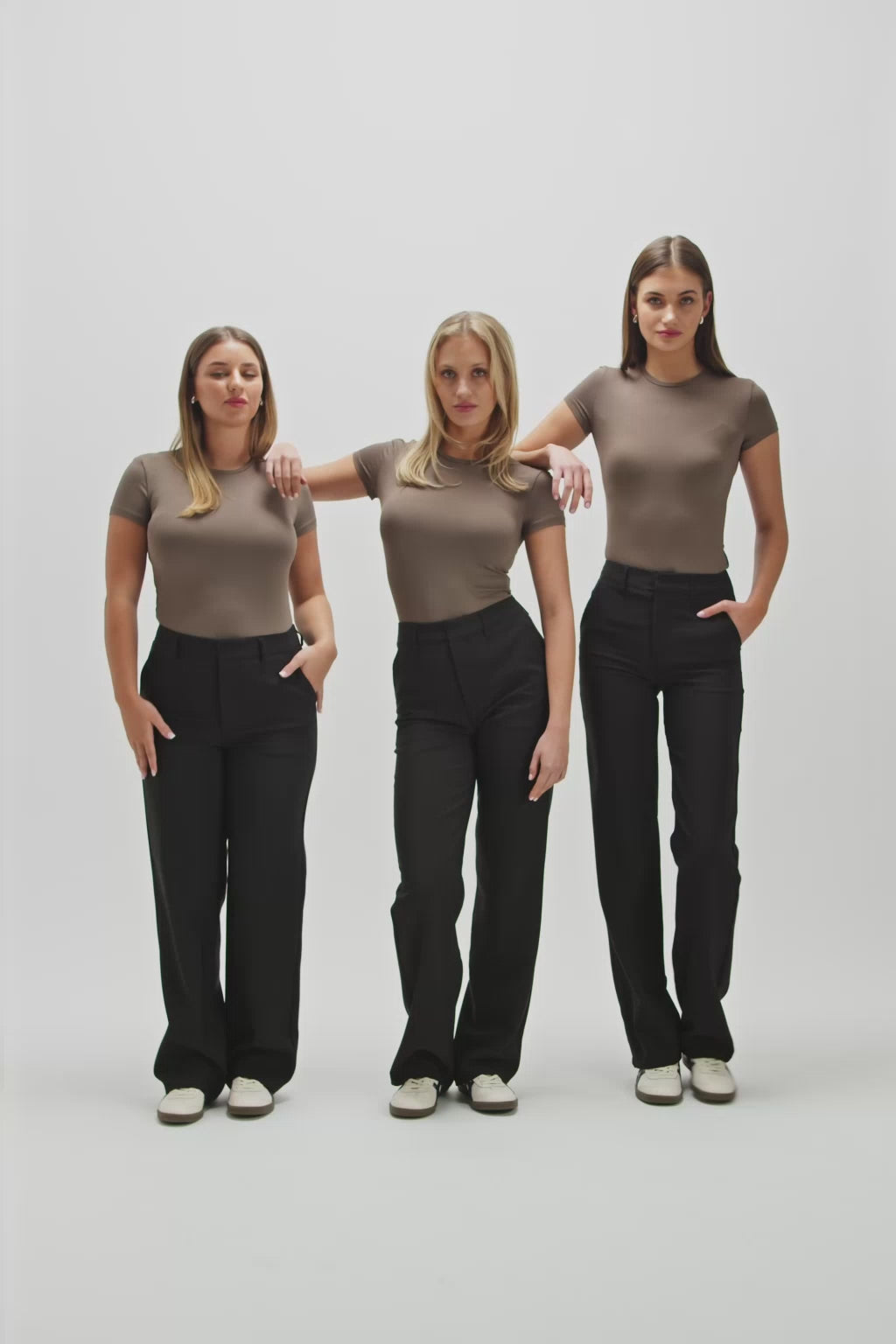 Strukturerte, men aldri stive. Våre dressbukser er laget av et mykt, kroppstilpasset stoff som sitter riktig der det skal og faller der det bør. Slanke, moderne og designet for å føles like gode som de ser ut.
