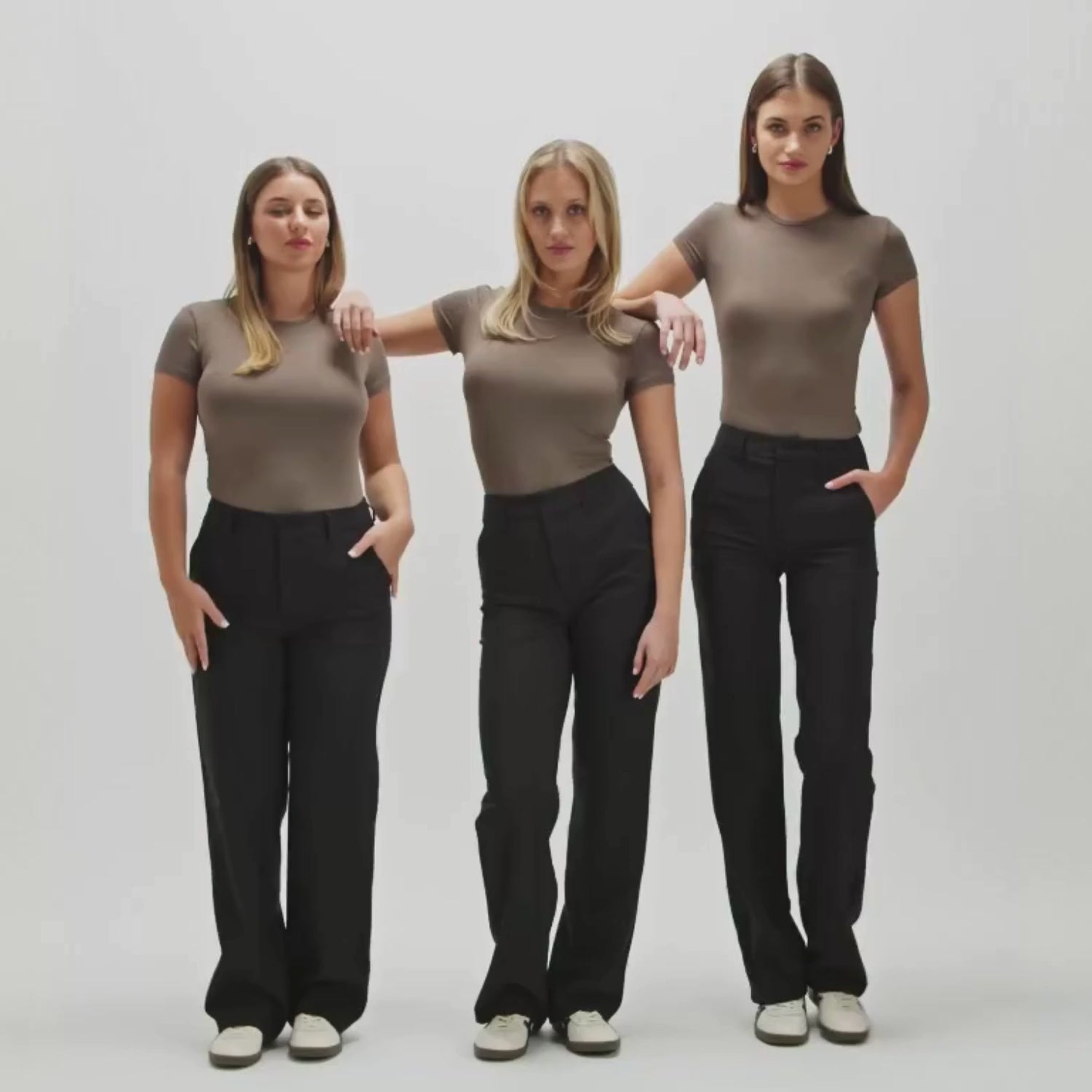 Strukturerte, men aldri stive. Våre dressbukser er laget av et mykt, kroppstilpasset stoff som sitter riktig der det skal og faller der det bør. Slanke, moderne og designet for å føles like gode som de ser ut.