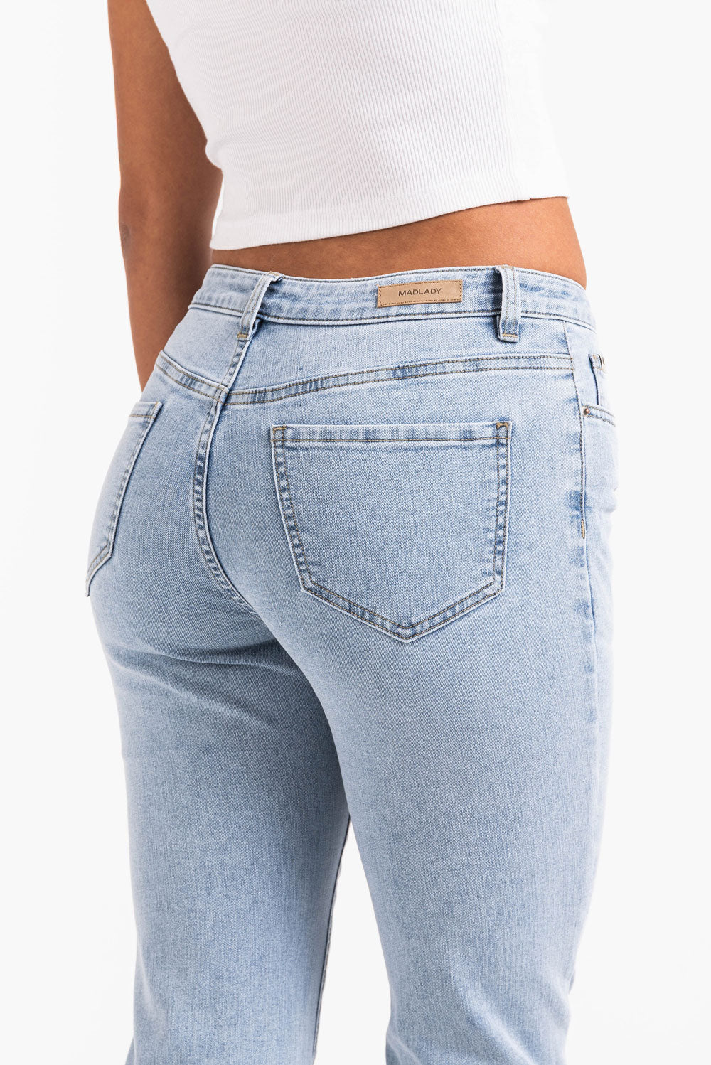 Disse jeansene med middels midje har en bootcut-passform med bak- og sidelommer for hverdagslig funksjonalitet. Designet med beltehemper og glidelåsgylf, tilbyr de en tidløs, strukturert look perfekt for uformelle antrekk.